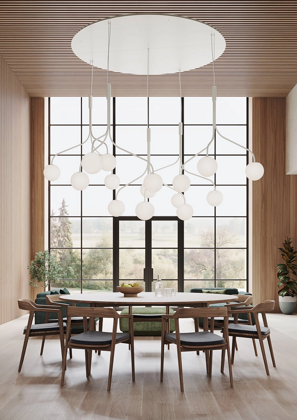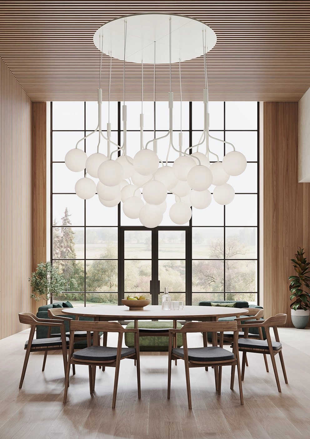 Another of Zero’s big, popular families, Convex, has new additions in the pendant chandeliers Convex …