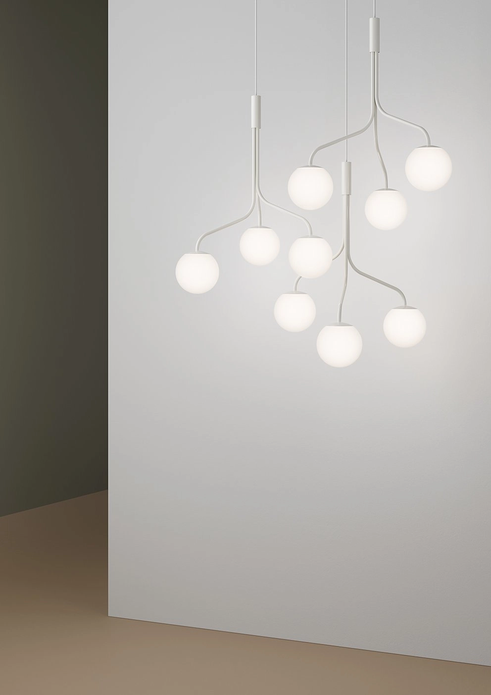 The most recent addition, Curve Cluster, features three branches bundled together to form a pendant lamp. Curve Cluster can function as a standalone light or be combined with multiple pieces to create an organic chandelier. The lamp can also be customized with either lamp shades in painted metal or glass globes in different sizes.