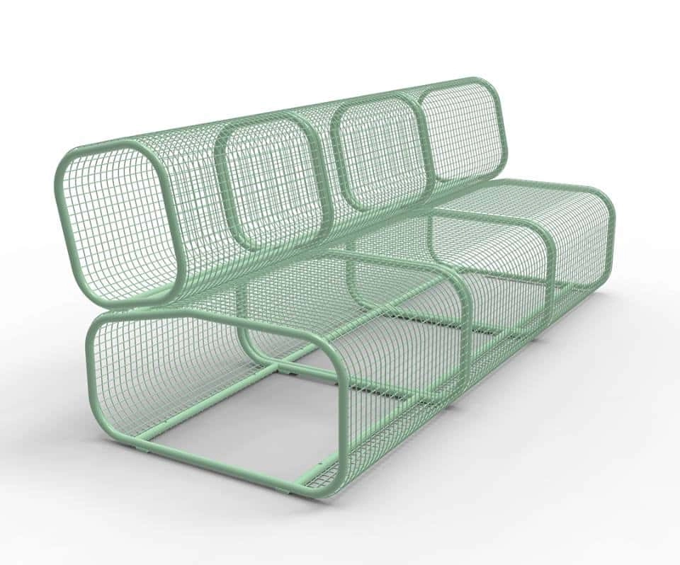 Cushy is an award-winning lounger that can be used individually or combined with others to create a bigger, sofa-style seat. Inspired by the plush comfort of big cushions, the seat and backrest are characterized by subtle curves and gentle contours that make the overall structure look softer. Crafted with net-like construction, Cushy is light and airy in expression, making its generous proportions appear sleeker. Its open construction allows rain and water to run off, making the product virtually maintenance-free. Cushy has been designed as a modular component that can create long, lateral rows, attach perpendicularly to form a corner. Cushy offers living room-like comfort with all the benefits of public space design.