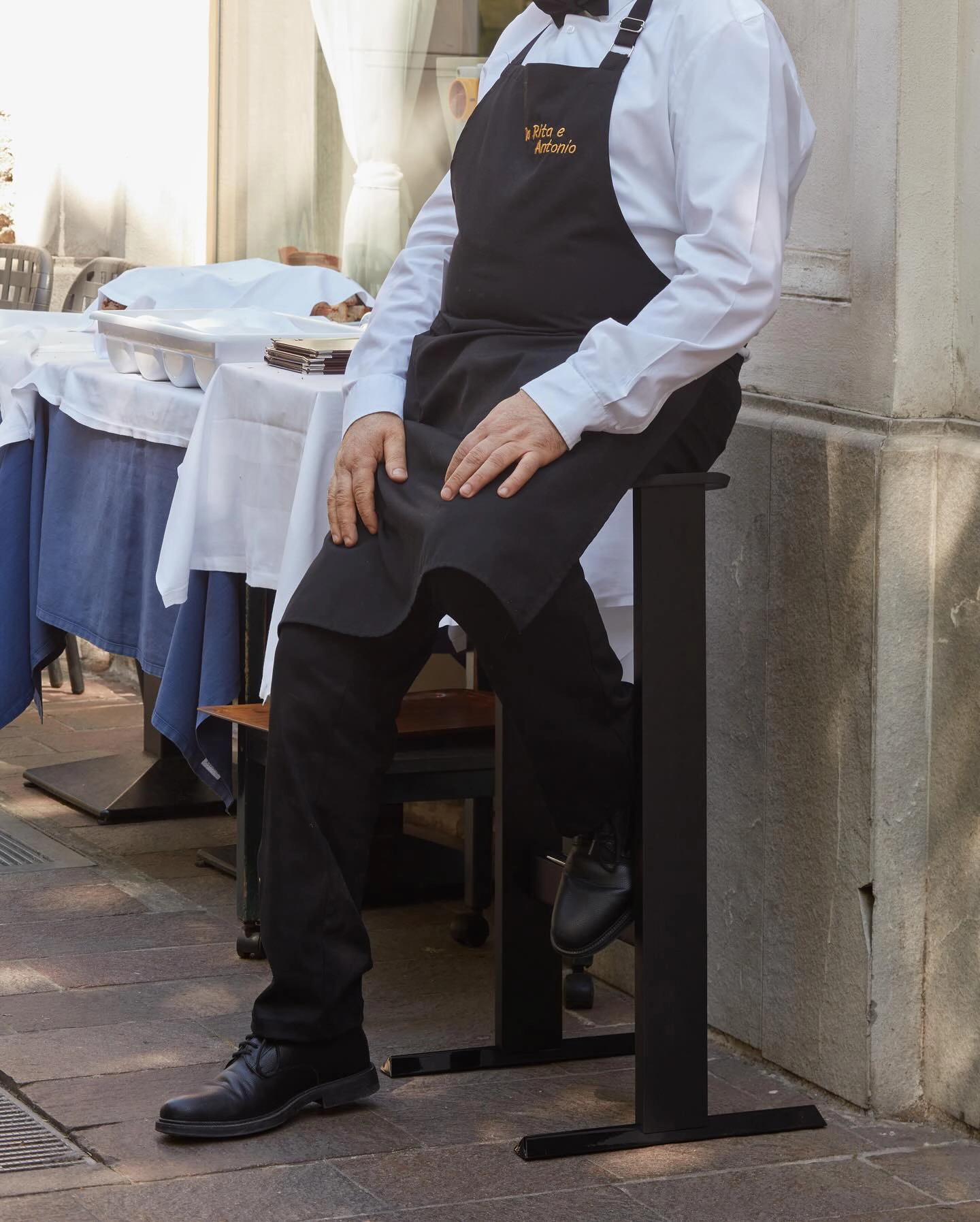 Available in natural finish or colored stains with textured or gloss steel elements, the Lira stool can be specified with either felt or hard plastic inserts to suit different flooring needs. The horizontally stackable design makes it as practical as it is beautiful—already pre-tested and approved by Milanese professionals.