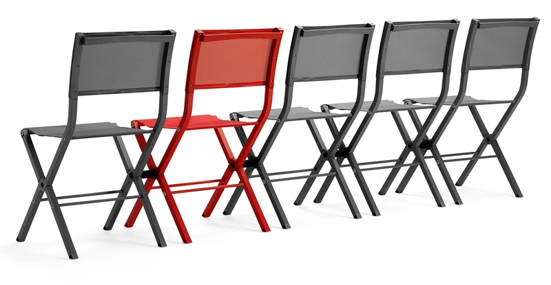 The Swedish architect and designer Stig Ahlström has designed among others the departures lounge at Arlanda and the SAS main office in Solna in Stockholm. He has been fascinated for a long time with the design of scissors and pliers and how their components are linked together. And now he contributes to Materia’s range with the Xtra folding chair, the design of which is inspired by the hinge in a scissors or the joint as he refers to it.