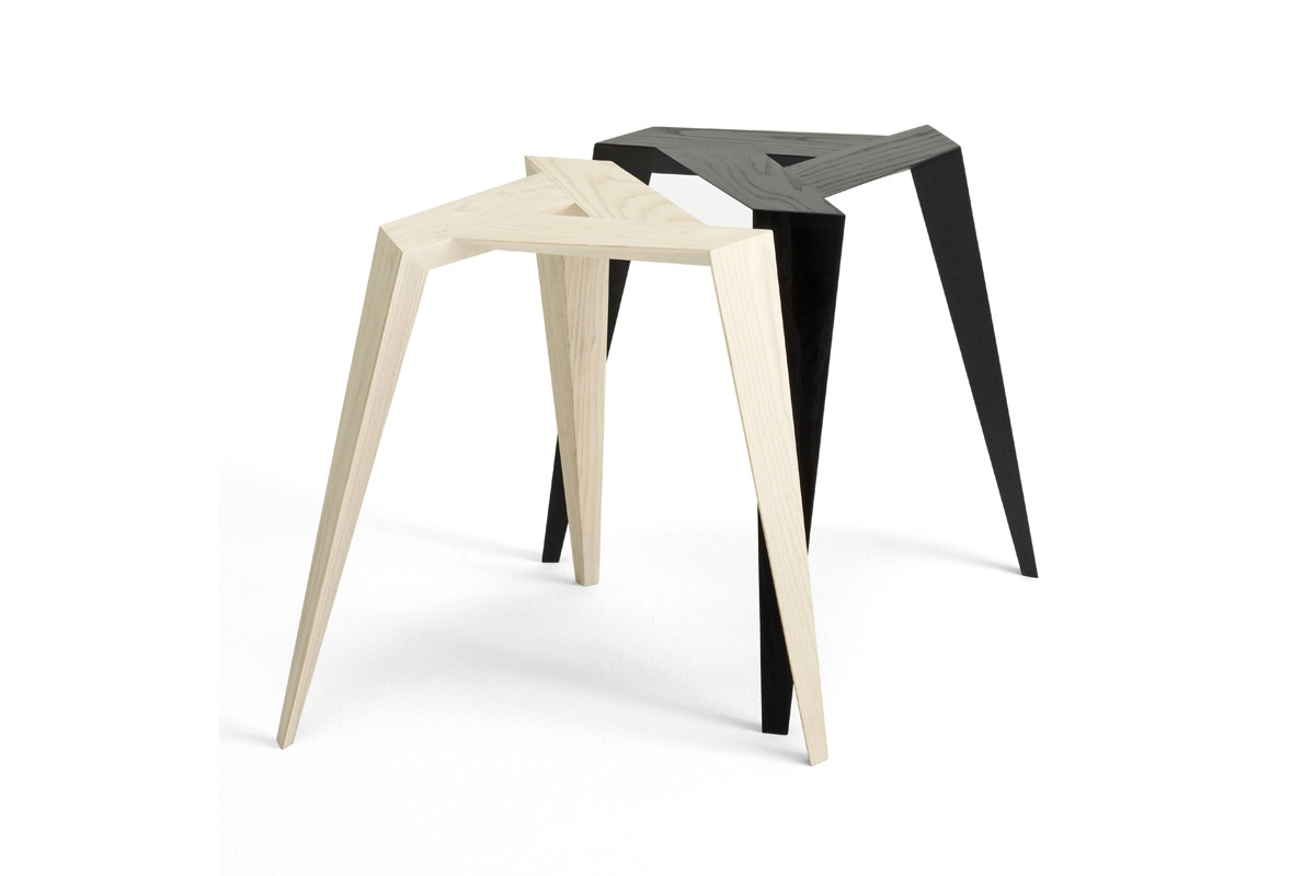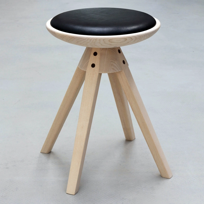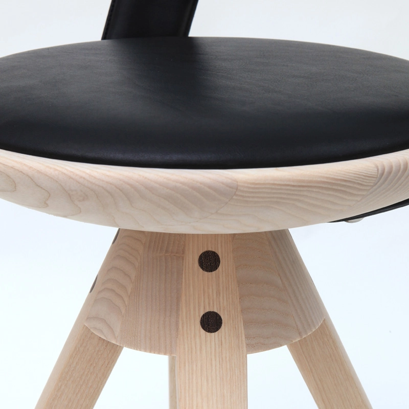 The construction in solid ash wood is intelligent and complicated and is hidden inside the elements of the stool. But the expression seems simple and natural as if it was moulded.