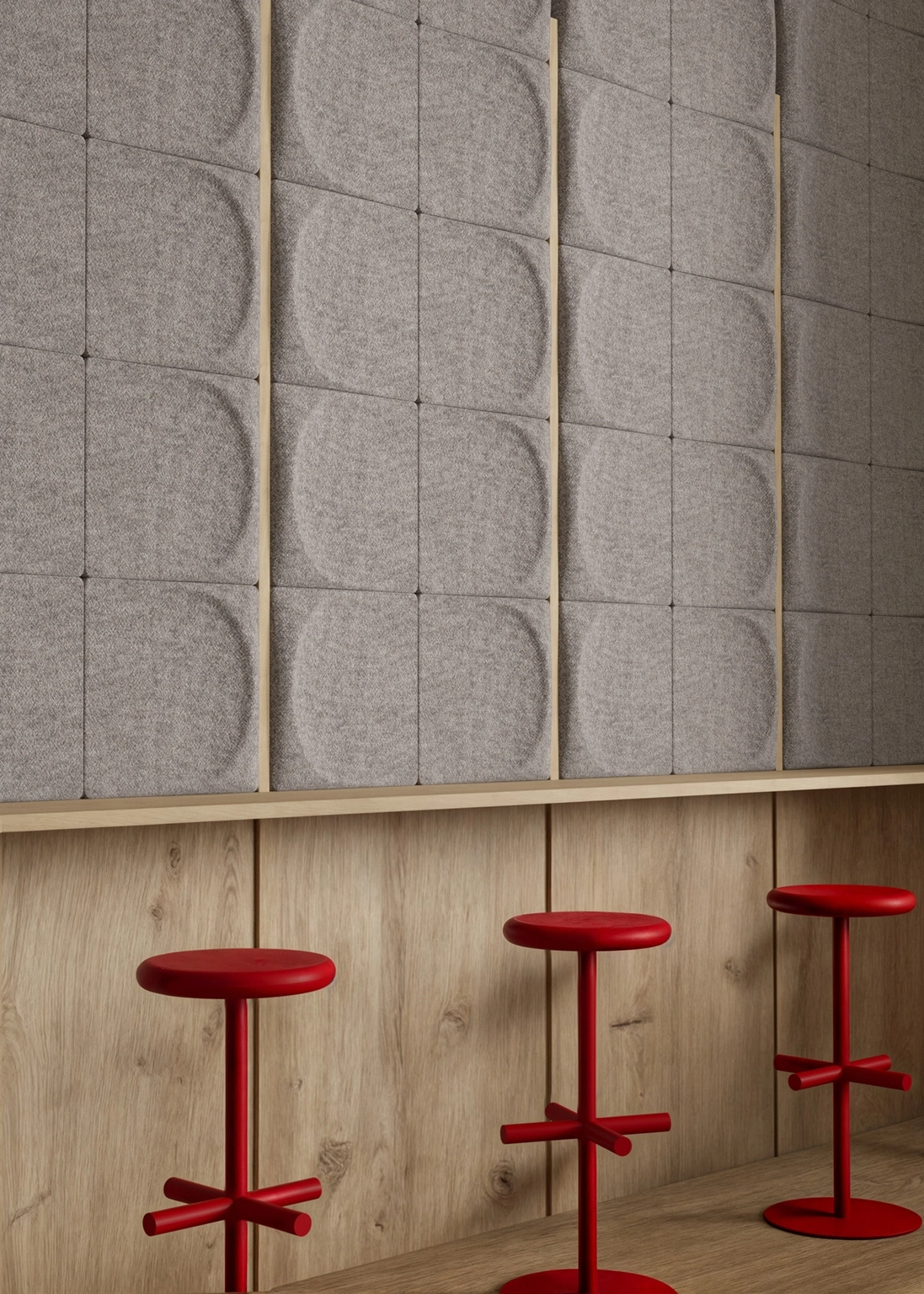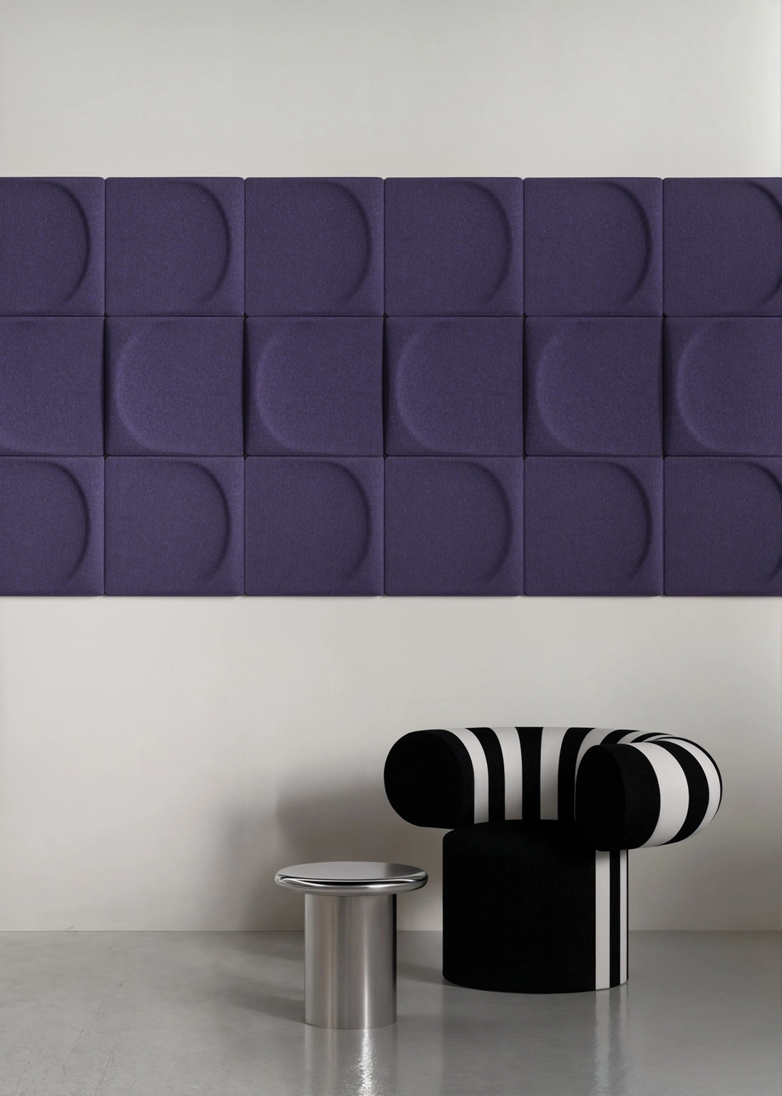 Like the three previous sound absorbers/wall decorations, Ginkgo, Gaia and Arc, Drip is multifunctional in the way that it is just ONE panel that can be turned in four different directions or change place with others, creating new and endless patterns. Drip reduces ambient noise and echoes in the room and gives the room the best sound quality while creating a colourful and inspiring ambient. Drip is mounted on the wall with a magnetic fitting, so you can easily move around the panels when you feel like it, maybe to change direction or go from light to dark.
