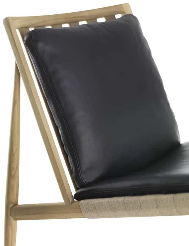 “Sitting on the floor in Japanese houses is a special experience. No chair, more like in nature, with the refined simplicity – zen. The working name for the chair, I longed for was zazen – sitting meditation. A perfect seat angle on a beautiful wooden frame, a webbing flax wearing seat cushion of hästsvanstagel and back cushion of the waterfowl feathers, both in the case of naturally tanned Tärnsjö leather. Ascetic in his expression, but comfortable in their sense. It does not sit in a chair without the room, which in mid-air. placing two next to each other is especially beautiful. Many of Norrgavel furniture have generic names, but what is this? More than a chair, but Armchair is too stopped … so we took the English to help and it was Easy chair. “