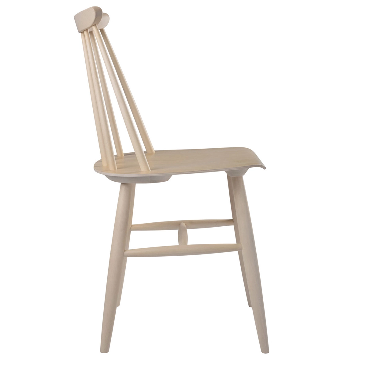 Edsbyn began producing Windsor chairs as early as 1936, using leftover wood from the ski manufacturing. The Fanett chair emerged in 1949 when factory foreman Lennart Karlstorp developed a chair design that minimized both weight and production costs. A few years later, the design was refined by Ilmari Tapiovaara and received the model name 55T. That’s when sales truly took off. By the time production of Fanett ceased in 1970, over 5 million chairs had been sold. Ever since, we’ve continued to receive inquiries about restarting production.