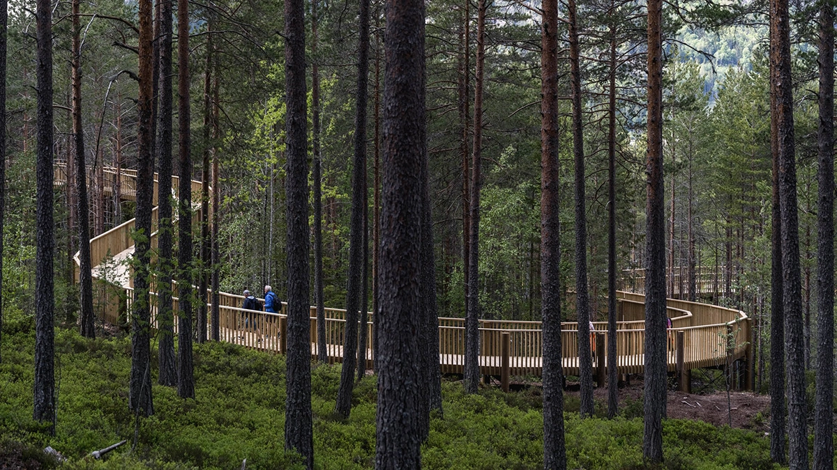The Treetop Walkway in Hamaren Activity Park offers all nature lovers, regardless of age, disability or physical limitation, a new perspective on the mountainous pine forest of Fyresdal at 15 meters in the air. The canopy walkway in the Telemark region, known for its islands and fjords, is the first of its kind in Norway.