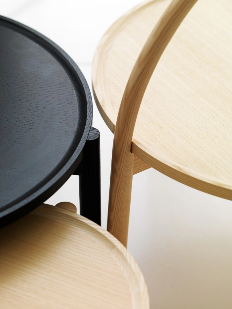 Elna for Gärsnäs is a coffee table/nesting table and a handle table with a tabletop and frame in ash. “As a child, I got to go with my grandmother Elna to the market in Jakobstad. At the various stalls, half-circle-shaped splint baskets with twisted handles were stacked on top of each other. The shape of the table came from the memory of the baskets piled up in the bustling marketplace. The table was named Elna as a tribute to my grandmother.”