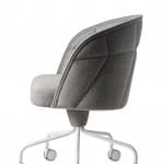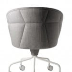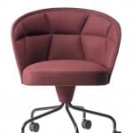 “Emily is a dainty armchair that envelops you. Its well-tailored, feminine character is accentuated by the soft textile part extending down into the hard metal frame. An organic idiom without no hard edges, and the sophisticated stocking detailing makes Emily an wholly unique swivel chair for use in many new contexts.”