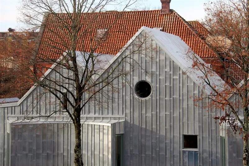 “The SHEET METAL PRIZE 2016 is awarded to a building that evokes emotions. With a clear character, like a small-scale mountain range with independent peaks, it radiates strength and security as well as liveliness. The monolithic volume consistently bears a material with the promise of beautiful and wise aging, and despite the strong contrast to the original building, the execution is based on great respect for the original volume’s architecture and materials. Here, the venerable is allowed to interact with the modern, to meet in a new expression that will bring them ever closer together over time. The creators have been insistent in their choice of material, which is rooted in very good material knowledge. A familiarity that has also enabled richness in detail in the fine print as well as space for great craftsmanship. The residents of Alingsås should confidently follow each annual ring on this solid building.”