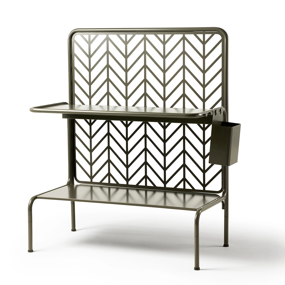 Home gardening is a growing sector with relevance to schools and retirement homes as well as communal gardens and residential yards. Meeting the demand for attractive, functional gardening equipment, Erba provides a workbench for nurturing plant life, storage for utensils and a trellis for hanging tools. Erba is available in two heights – sitting and standing – with a footrest that encourage an ergonomic posture while working. Erba helps make sowing seeds, growing shoots and harvesting plants a source of inspiration for individuals and communities alike.