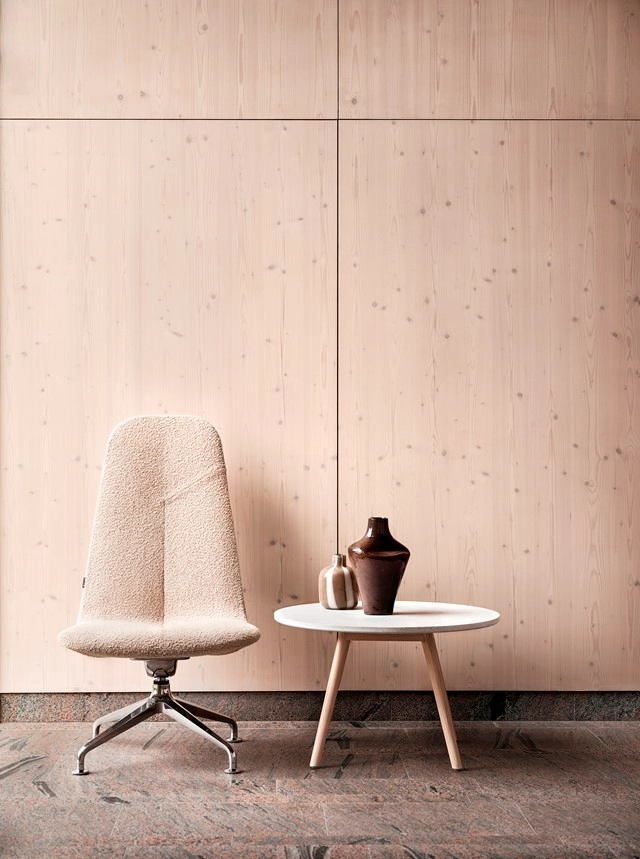DeciBel design: Ruud Ekstrand Wood combined with sound-absorbent material results in a comfortable chair that …