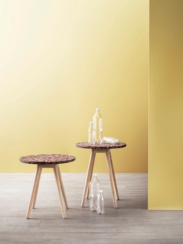 “In the move towards using fossil-free plastics, we must take care of things that already exist. I have created a new life for plastic waste in the form of a colourful table that still bears the marks of its history as a plastic bottle.”