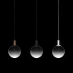 With no apparent light source, Fog looks like a flaming planet, a mystical hovering globe. The glass is blasted on the inside, graduated smoothly from completely covering the bottom to disappearing up near the metal socket, where the light source is well hidden. Fog creates a new effect with classical materials and proven technology. The light appears to shoot up from the bottom of the globe, emitting an ambient glow that rises like a magically fiery fog. D 350 mm. LED.