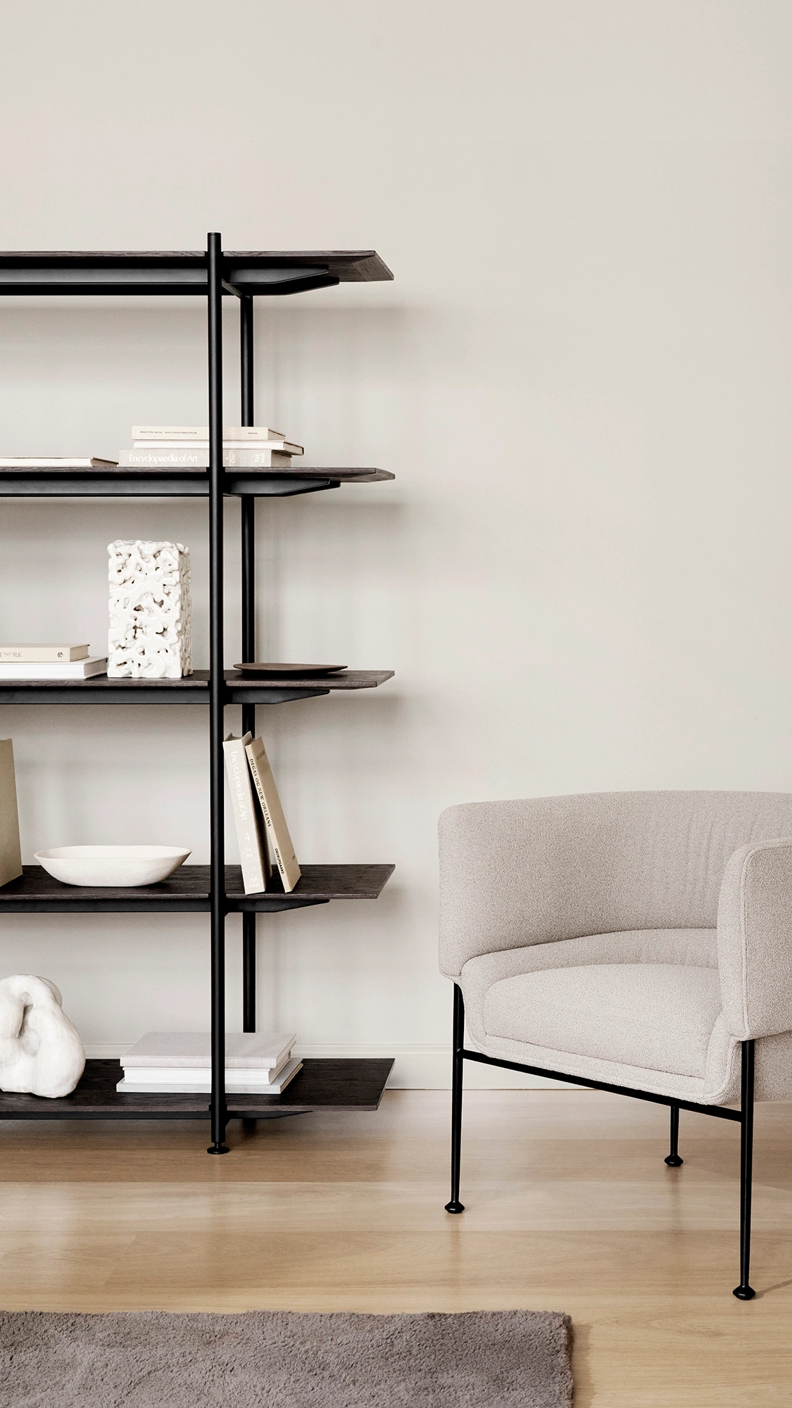 Choose one out of seventeen pre-arranged configurations and elevate the design and functionality further with well-considered complements in the form of trays, magazine stands and book supports.