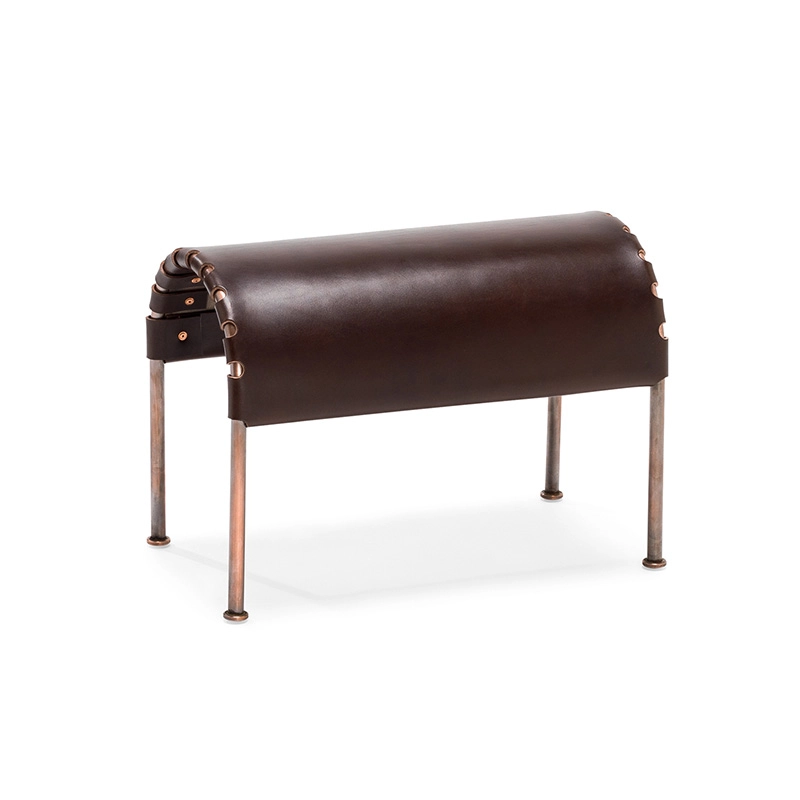Nitat kärnläder. Stålstativ i krom eller koppar.
