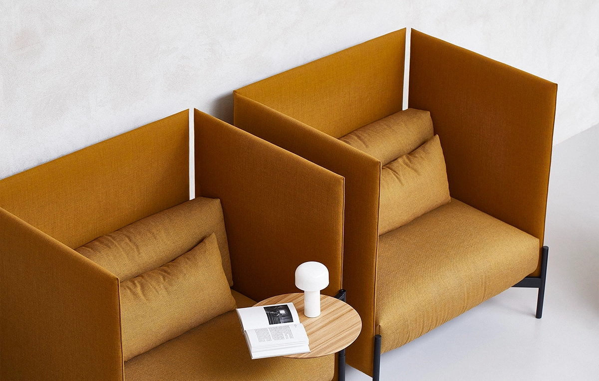 Fragment is a series defined by details that inform its function. Peepholes slice through corners so it’s easy to gauge occupancy of seats and sofas indirectly, and back and side sections flow upwards to give the sitter a little privacy and room to think.