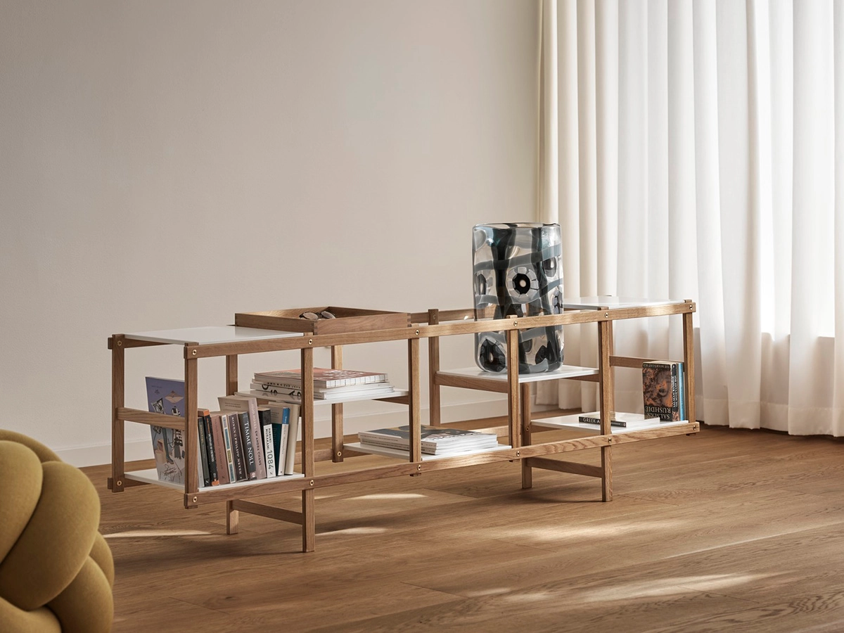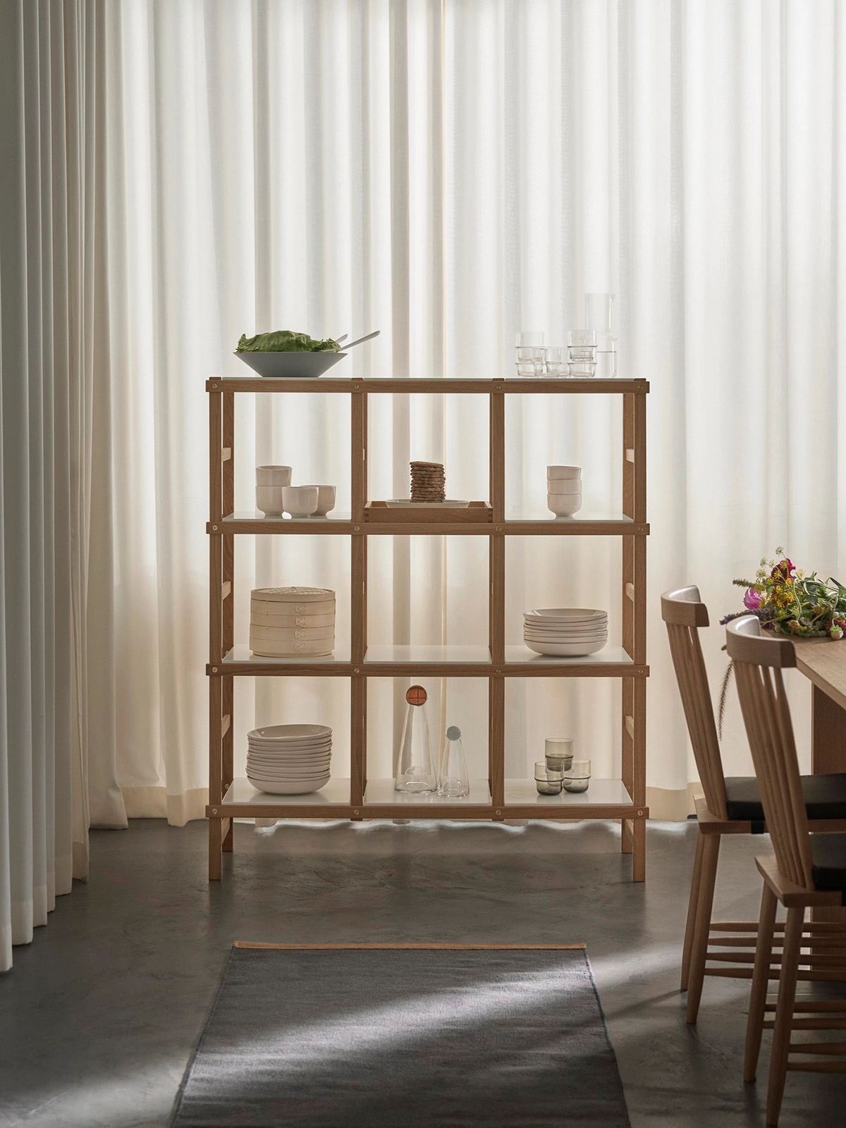 ’I wanted it right away,’ says Anders Färdig, creative director and founder of Design House Stockholm, who saw Frame at an exhibition at Färgfabriken in Stockholm many years ago, ‘Harald was not too keen to have us produce it then, but five years later he called me and we struck a deal that will make Frame available to a world-wide audience.’ Frame is an extremely flexible system that with mathematical precision allows the grid-construction to carry shelves, trays and boxes that are easily moved around. Made of profiled sticks that are countersunk into each other, Frame manages to be light yet sturdy and only requires a hex key to be assembled. And of course, truly Scandinavian all-in wood with attention on the joinery.