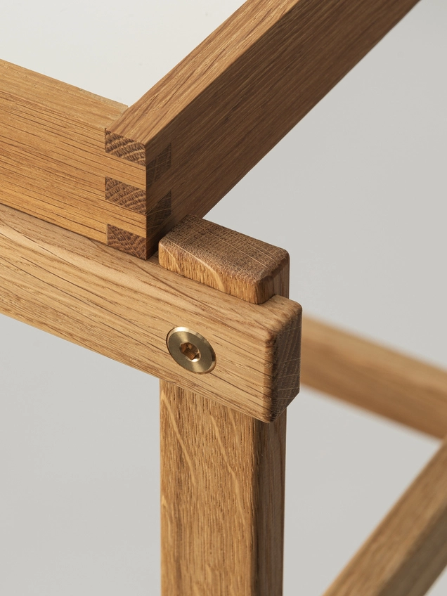 Harald Hermanrud is based in Copenhagen and has studied for cabinetmaker apart from his degree from Royal Danish Academy of Fine Arts’ Design School. While approaching design as a problem solver, he combines the principles embedded in Danish design tradition with his own senses for materiality and craftsmanship. ’By exposing the brass nuts you add a glossy shiny detail that show off the construction which make you understand how it is made and assembled.’ Harald Hermanrud explains. ‘That honesty makes people relate to the design, and I see that as a very essential and characteristic part of my design language. No unnecessary thing, just the works.’