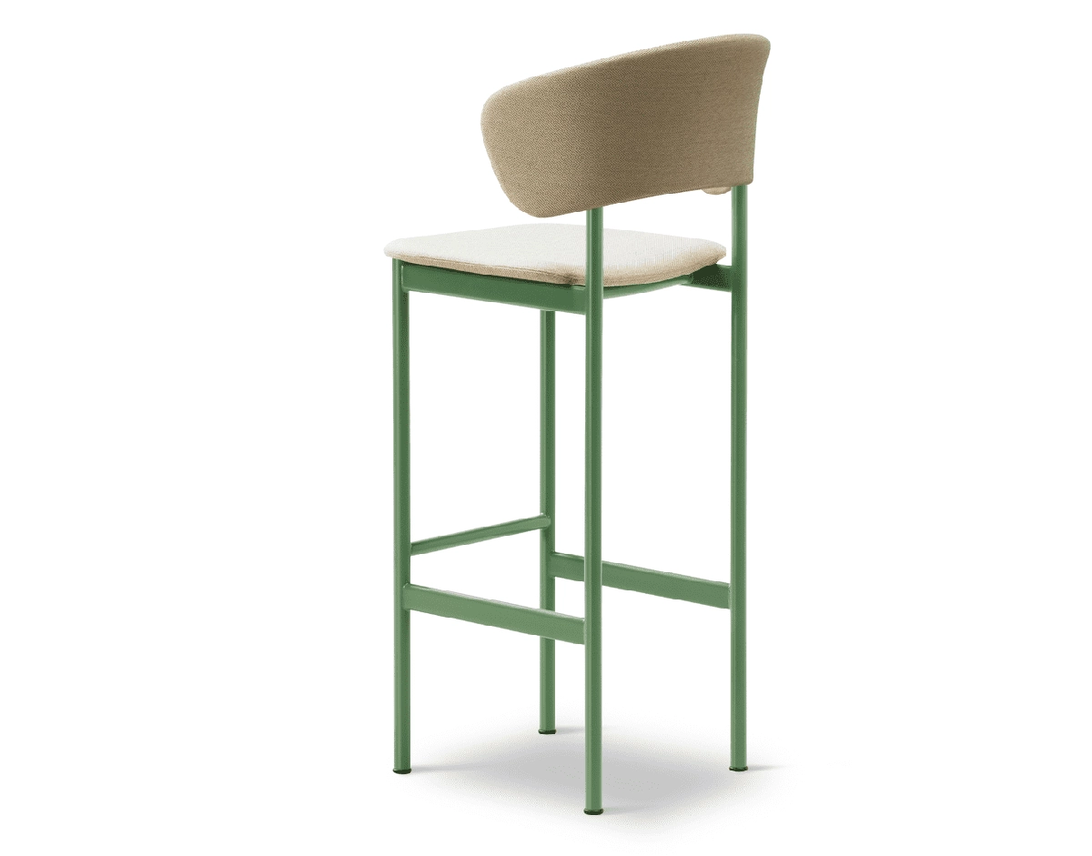 The Plan Armchair and Plan Arm Barstool feature a casual armrest ideal for meeting spaces and dining areas. Its design plays with forms, curves, and shapes, providing just the right amount of armrest for added comfort. The chairs are fully upholstered with a frame in Black, Brushed steel, Bordeaux and Modernist Green. All chairs in the collection are available in specific EU Ecolabel-certified variants.
