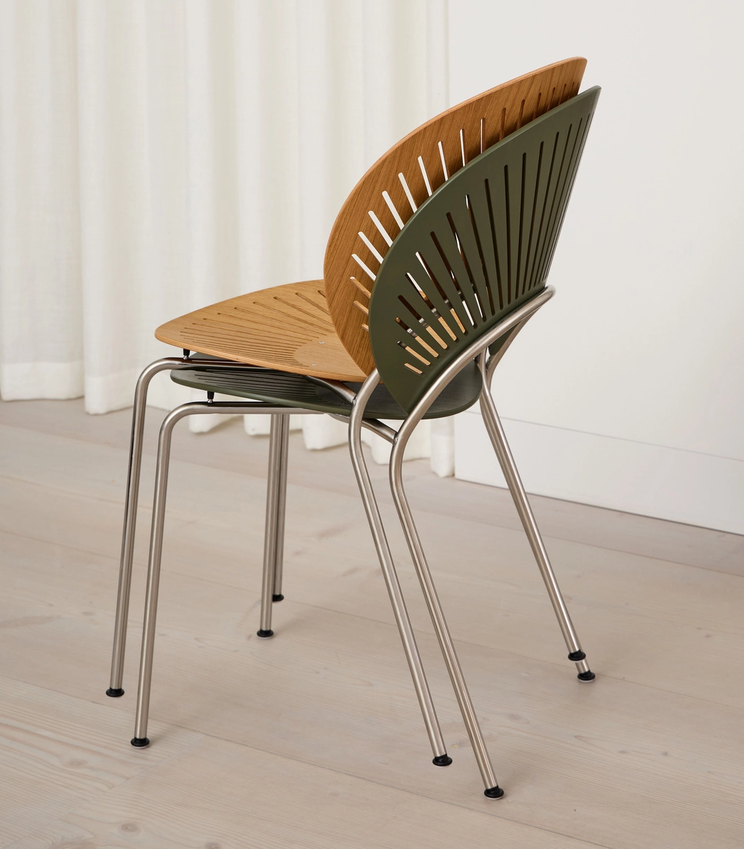 To commemorate what would have been Ditzel’s 100th anniversary and the 30th anniversary of the Trinidad Chair itself, it is being launched in the new colours Khaki, Nordic blue and a delicate Oak oil version, all with brushed stainless steel legs.
