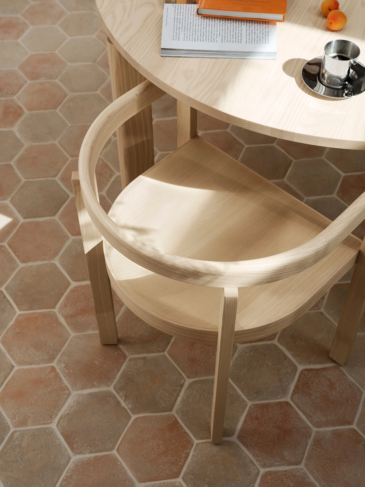 The result is a chair clearly authored by Anastassiades that bears traces of classics by Danish masters such as Kaare Klint and Poul Kjærholm. The round dining table echoes the clarity and play on geometry in a sturdier form. Their honesty, purity and materiality, a testament to the technical prowess and craftsmanship of Fritz Hansen.