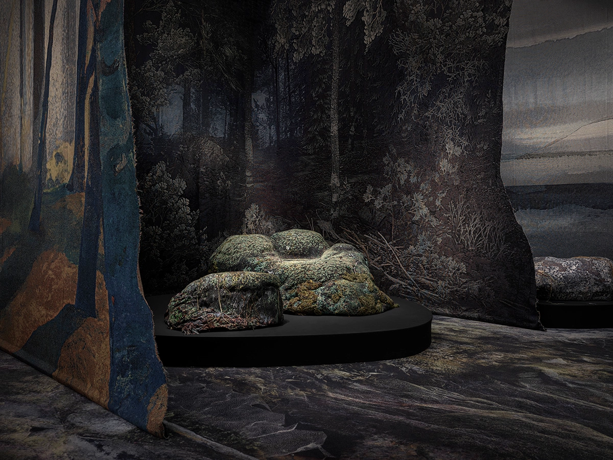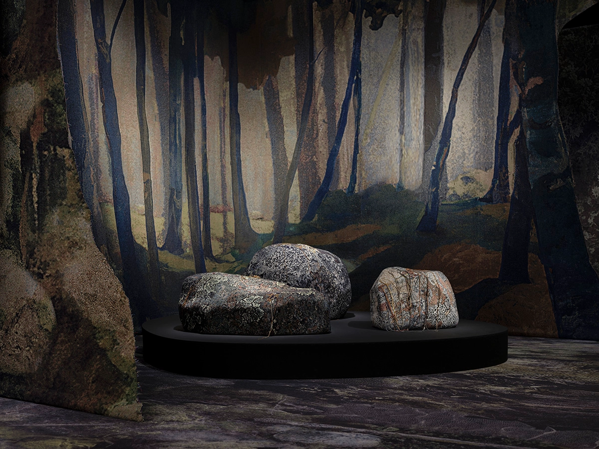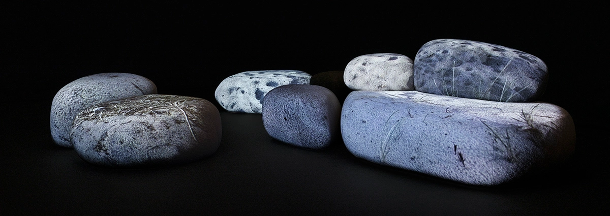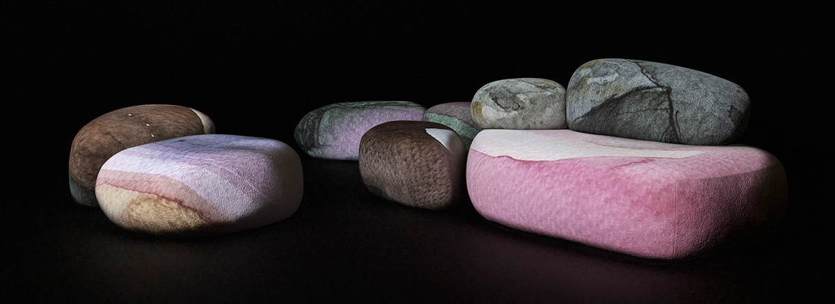 Design by Nature is a project in which, over several years, Front documented places in nature and investigated creativity within the animal and plant kingdom. The documentation has, among other things, took place through 3D scanning of lakes, forests, rocks, animal tracks, iden, mosses and plants in order to be able to study and reproduce nature’s imprint as patterns and shapes. The material has inspired Front to a new series of objects and furniture created through traditional craftsmanship such as weaving, tufting, embroidery, plant dyeing and modern technology such as digitally woven tapestries. Front is one of Sweden’s most established design studios internationally. Their works take their starting point in investigations and experiments where the objects carry a story. To help them in the creative process, they have, among other things, created objects with the help of animals, through advanced technology and in unexpected materials. They have made themselves known for the now iconic horse lamp and the freehand sketched furniture in 3D.