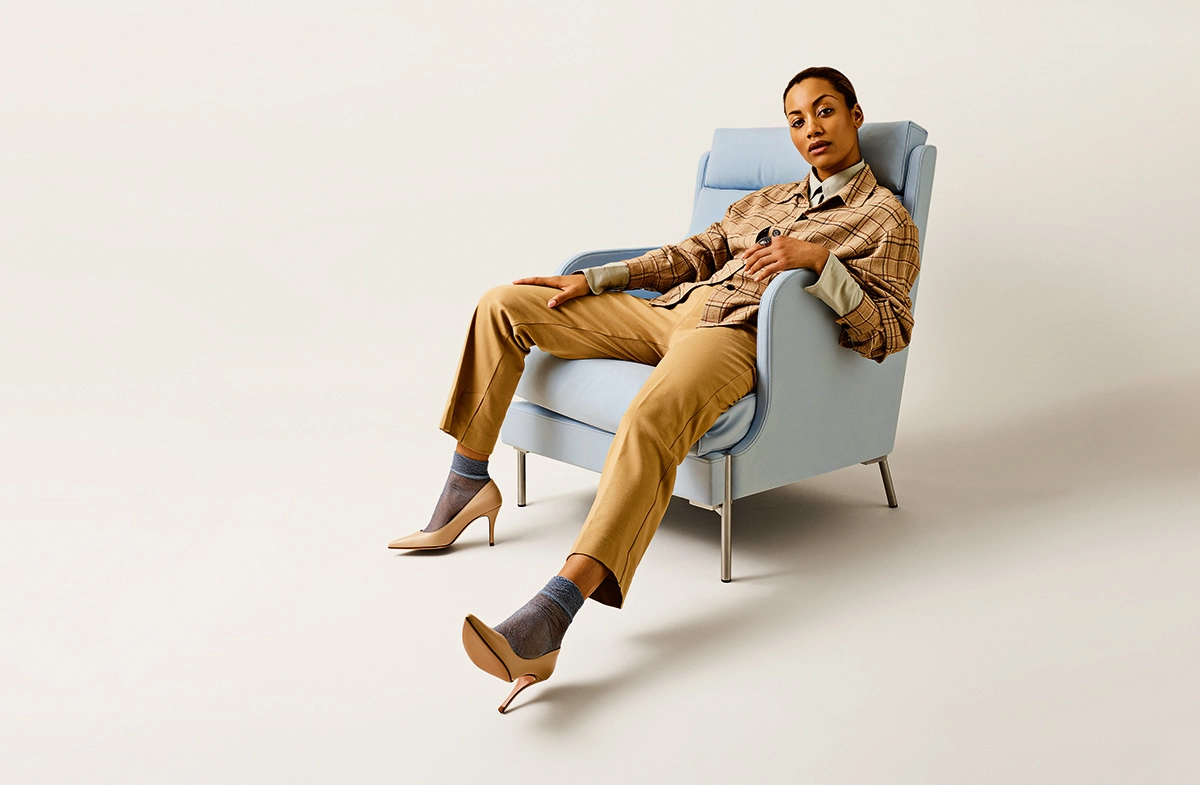 Eilersen has a passion for detail, both the invisible features that ensure durability – from the choice of thread to the use of slow-growing Scandinavian pinewood for the construction – and the more visible qualities. In Funen, one detail in particular stands out: the brushed stainless steel front legs that expose the joint between the back shell and the seat frame and thus highlight the moulded back.