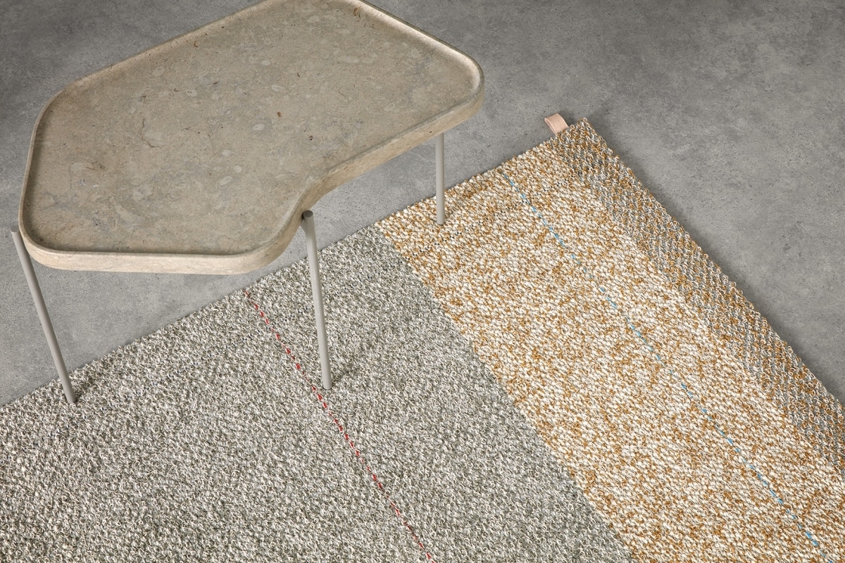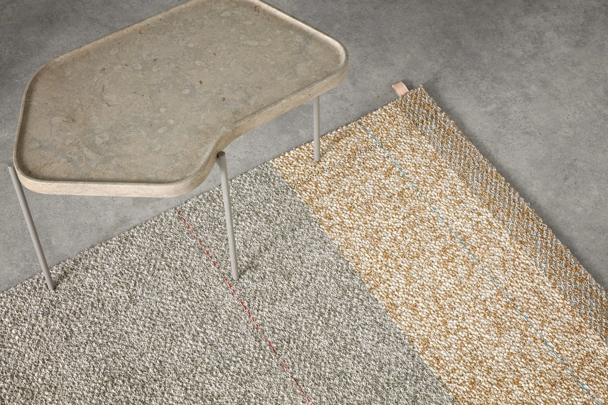 The soul and curiosity of craftsmanship has been given free rein in Gabrielle. Inspiration for the design was drawn from vintage textiles with carefully crafted details, embroidery in particular. Visible warp threads create irregular vertical stripes giving a sense of asymmetry. Gabrielle was also designed with accent colours that adorn the surface in the form of thin lines. The colours were selected to provide a contrast and strengthen the playfulness in the structure and crisscross pattern of the rug.