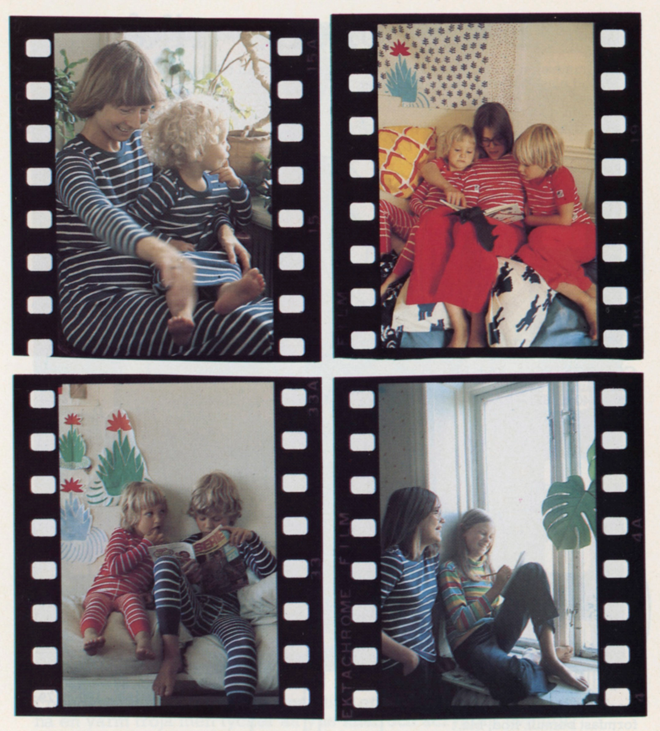 From the catalog for Polarn & Pyret from 1976. At the top left, Gunila Axén herself can be seen, who between the years 1974–84 was involved in developing the company’s basic collections and developed the stripe that today has become synonymous with the company.