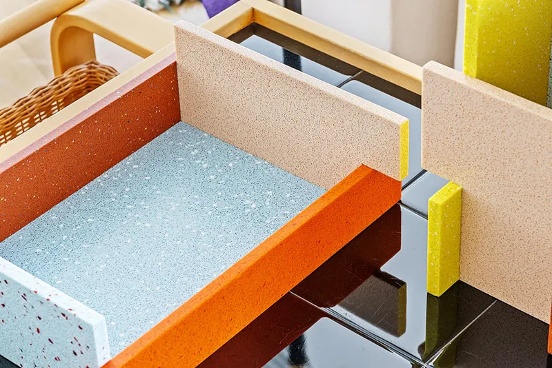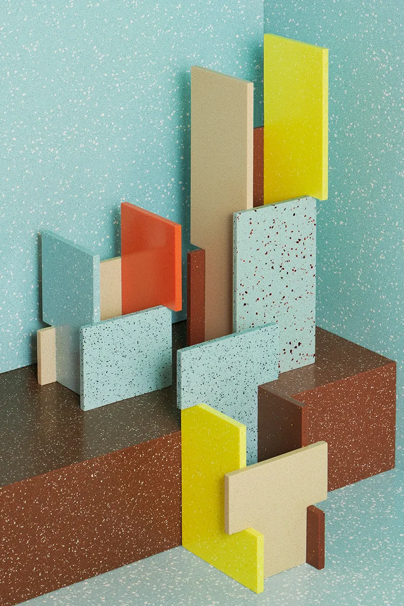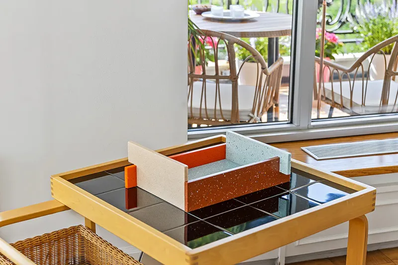 These contemporary organizers, “Facades,” are made from Durat solid surface made of recycled plastic. Collection combine style with functionality. Versatile in use, they tastefully display flowers, gather desktop essentials, and elevate kitchen wooden spoons. The sleek granulated finish not only appeals to modern aesthetics, but also stands for environmental responsibility. Durat’s commitment to using recycled plastic ensures that each piece embodies a progressive approach to sustainability. “Facades” redefines utility with limited-edition charm by reusing excess materials from production. This concept demonstrates a harmonious blend of cutting-edge design and eco-conscious living. The collection is available in our online store.