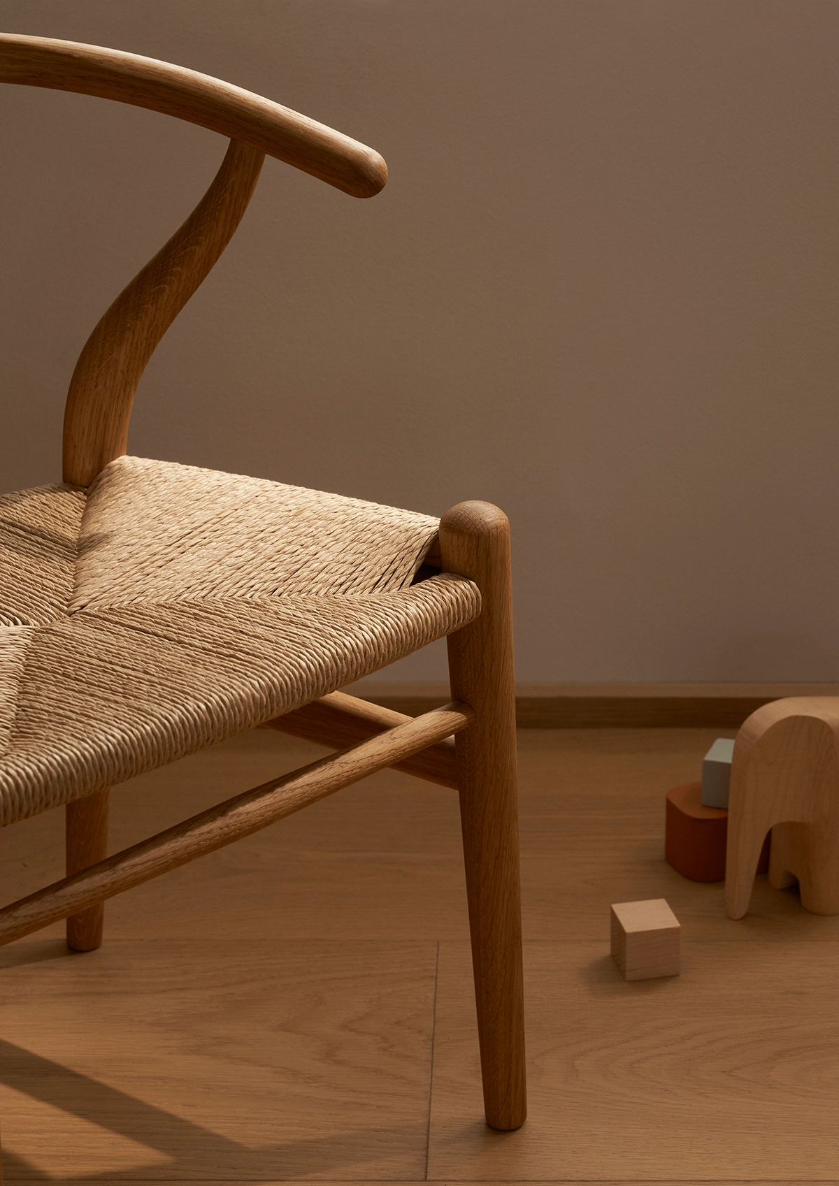 Knud Erik Hansen, CEO and third generation owner-manager of Carl Hansen & Son, comments: “Beautiful design and excellent craftsmanship are ageless, which is why we’re very pleased to present the CH24 Children’s Wishbone Chair. We’ve been dreaming of making a child-sized version of the iconic Wishbone Chair for years now, and we’re delighted with the result. This smaller version of the Wishbone Chair blends in perfectly with the rest of a household’s furniture and is an ideal gift idea for future design enthusiasts.”