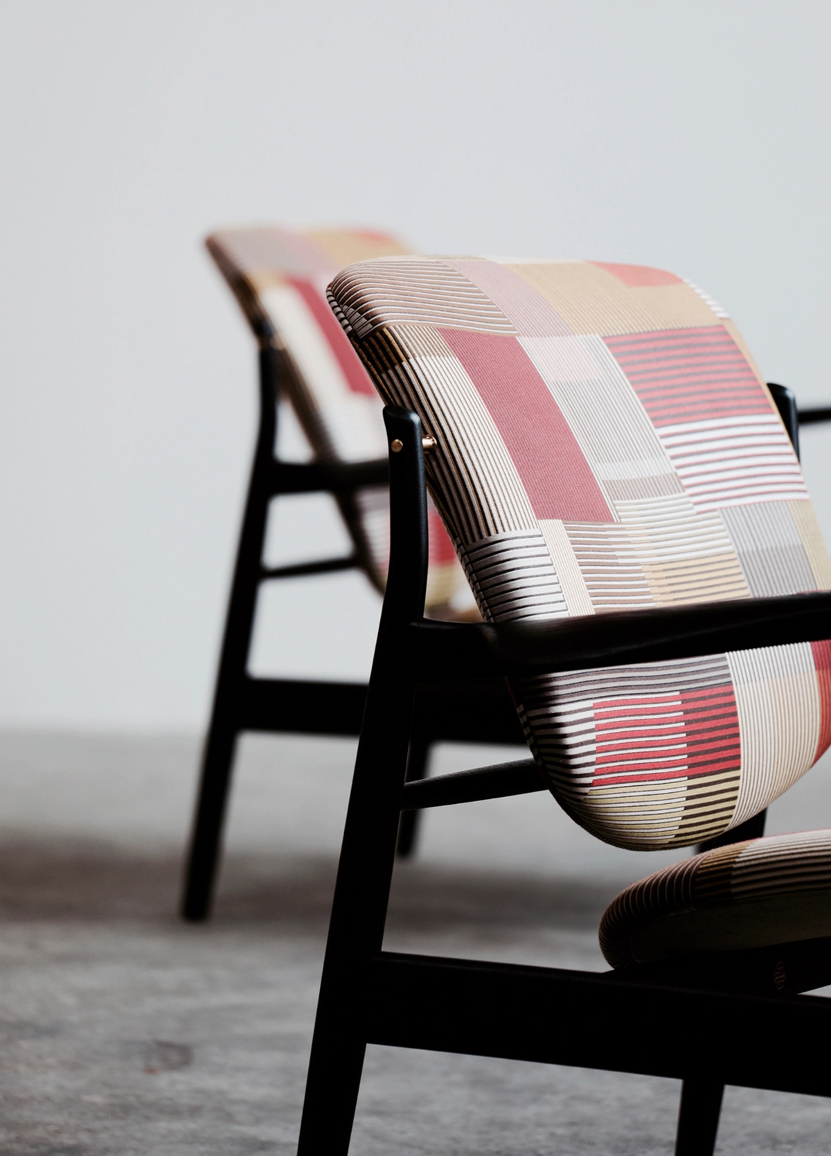 The elegant Finn Juhl 108 and 109 Chair will be given a new lease of life thanks to Paul Smith Maharam ‘Segmented Stripe’ fabric, while the dramatic 57 Sofa will feature combinations of coloured wool and Paul Smith Maharam ‘Point’ material. Finally, two Finn Juhl France Chairs will be upholstered in Paul Smith Maharam ‘Assembled Check’ fabric.