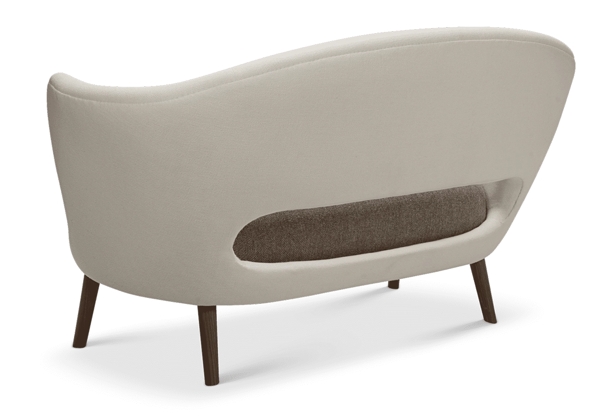Now named the Willadsen Series, the pieces are masterful examples of Finn Juhl’s artistic and unorthodox approach to design. The semi-oval gap allows the backrest to arch freely above the seat – a bold choice in 1950 that introduced a sense of lightness and showcased Finn Juhl’s ability to redefine the traditional upholstered form. The rounded silhouette embraces the seated person in a dynamic gesture, while the slightly angled legs elevate the design and enhance its weightless quality.