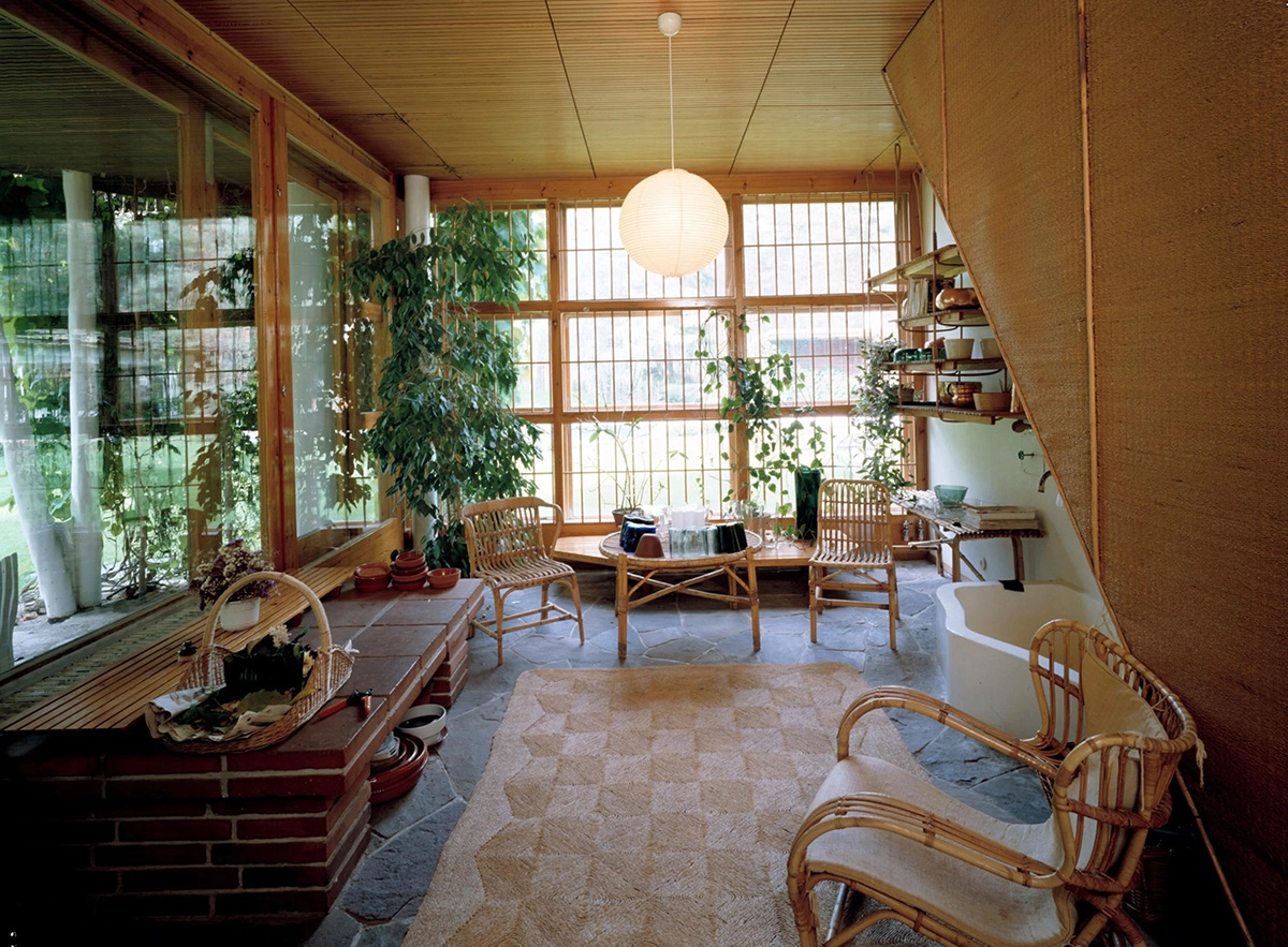 The quality of the natural materials in Villa Mairea gives the interior a welcoming atmosphere that belies its relatively grand scale. The woodwork of both the building structure and the furniture is of the highest quality, complemented by carefully selected materials such as leather, bast, bamboo and glass. Much of the furniture and lighting that fills the house was designed specifically for the space by Aino Aalto, with some of the specially commissioned pieces, such as the Lounge Chair 506 “Mairea”, becoming standard furniture products that were sold by Artek for many years.