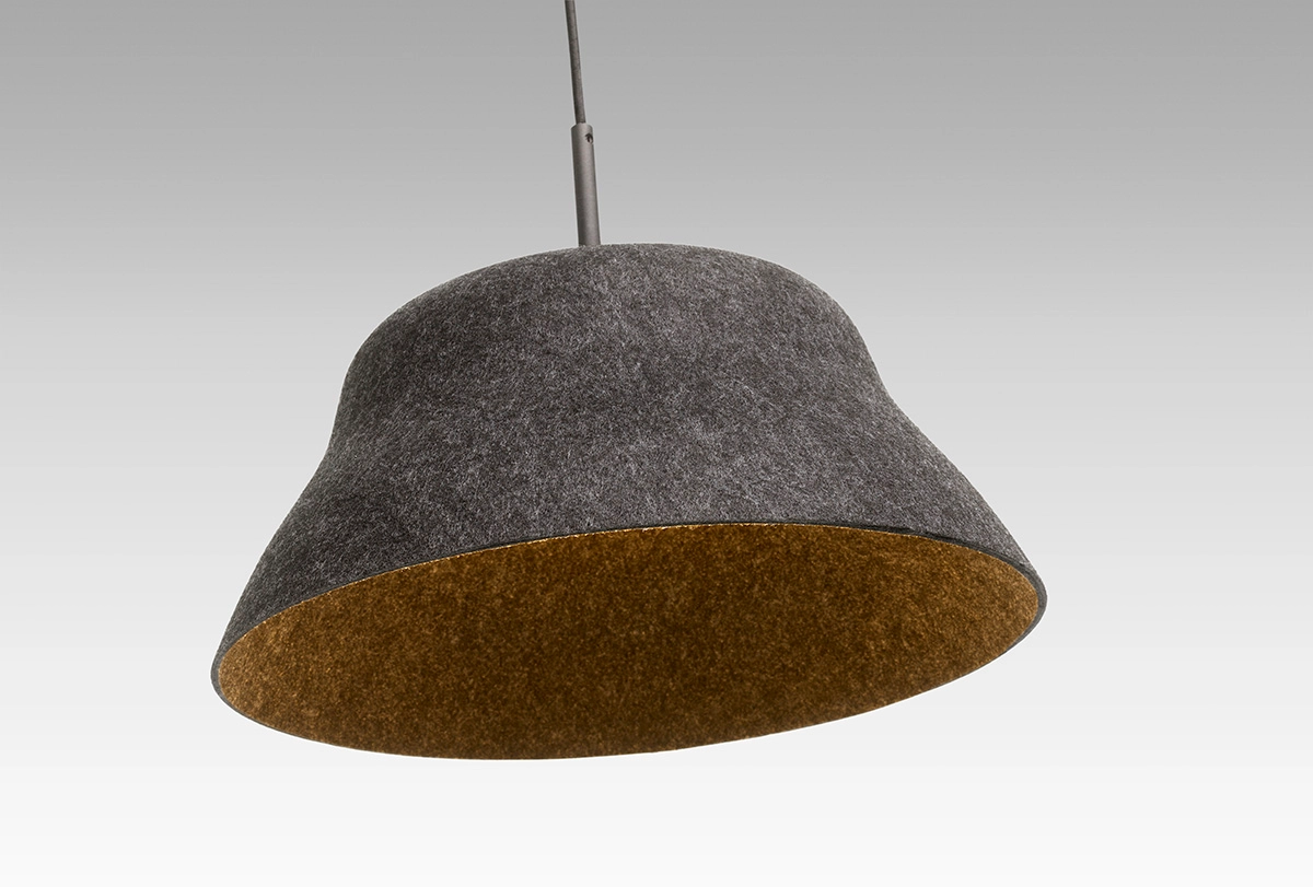 Inspired by all famous hats, weared to protect or highlight your personality. Hepburn is multifunctional. A pendant lamp with pleasant light, at the same time a sound absorbent and a piece of art. Three sizes in soft shapes in moulded felt, with a characteristic of elegance. As always iconic when we collaborate with Claesson Koivisto Rune.