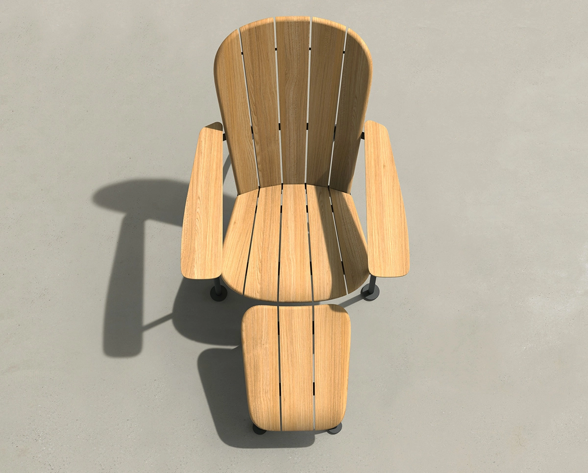 We made this chair with soft beaches, hard rock outcrops, grass between the toes, the edge of the pool or a spacious roof terrace in mind. An homage to the original Westport chair, in a durable, refined version with powder coated stainless steel and durable FSC-certified teak. Like a sea-cut stone, the armchair has rounded edges and soft shapes.