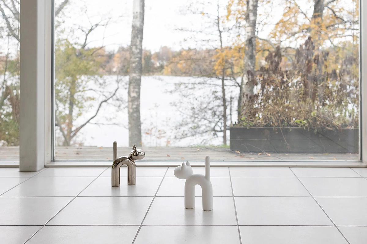 Mini Kisu cat figure Eero Aarnio Finnish design ceramic sculpture adorable curved tail minimalist home