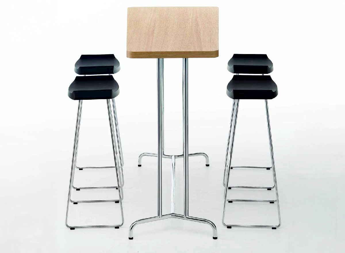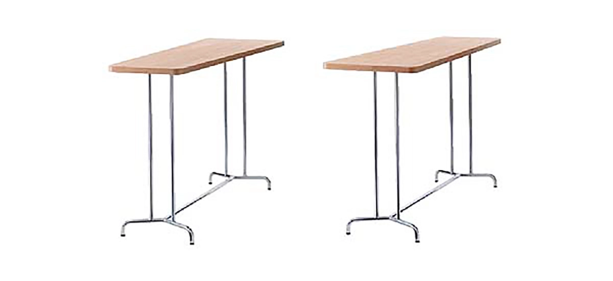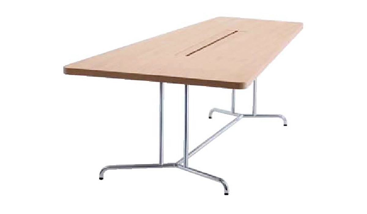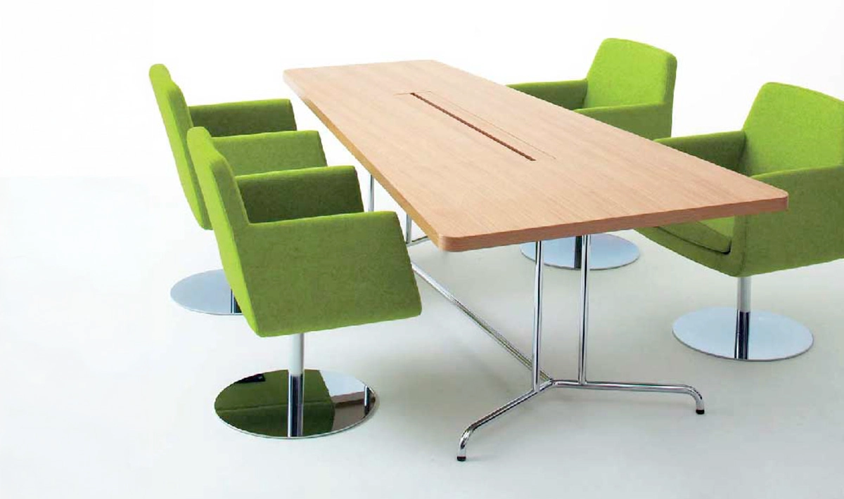 Performance: Table in birch- or oak veneer, white K3200UN or grey K1302UN laminate. Chassis in chromium. Surface treatment: