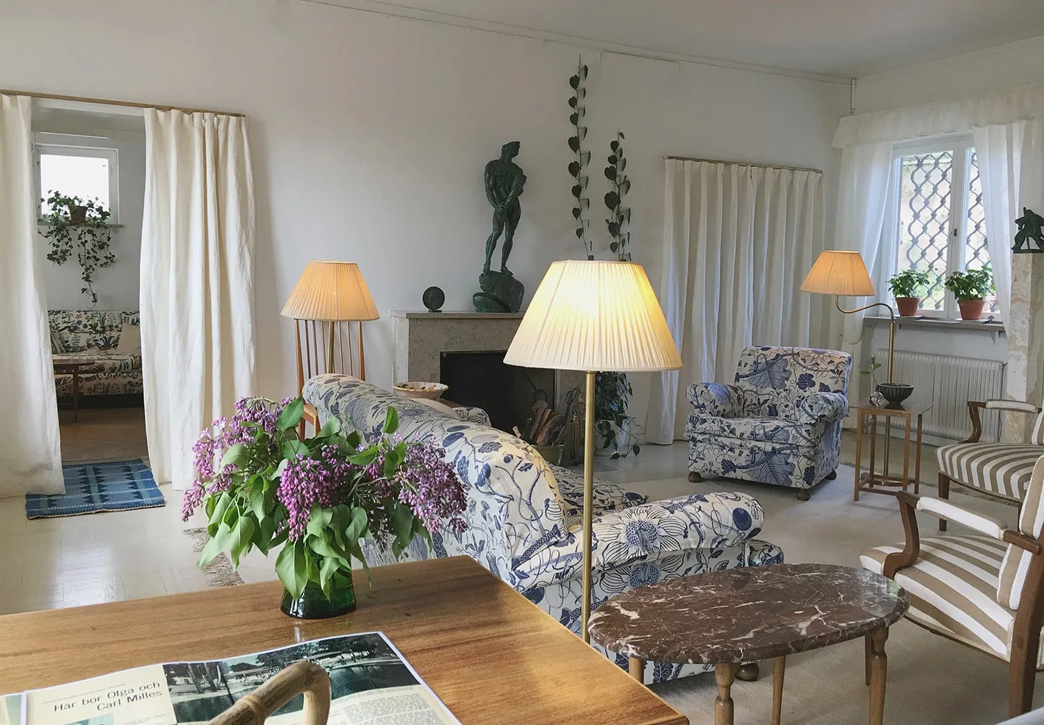 The exhibition comprises four sections. In the large space of the Art Gallery, Josef Frank is presented as designer with focus on the fabrics.A large number of watercolours by Josef Frank, a previously unknown side of the designer’s creativity, are presented in the inner gallery and also in a new book. Anne’s House, featuring interior design by Swedish Tenn and Josef Frank, will be open and provide visitors with access to the rooms. Here, Frank’s interior design ideas will be presented in texts. The fourth section of the exhibition, on the Lower Terrace, are the summer flower beds and flower arrangements inspired by Josef Frank’s designs and paintings and created by landscape architect Ulf Nordfjell (please note that this part of the exhibition can not be viewed until the summer flowers are in bloom, estimated in the latter part of June).