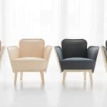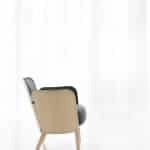 Julius is made using the revolutionary technique of “wood tailoring”. Färg & Blanche have invented and developed the “wood tailoring” concept, which means the furniture is sewn together. Färg & Blanche have previously sewn together the upholstery and padding, which proved very successful in Gärsnäs hits of recent years, namely the Emma easy chair and the Emily armchair. New this year is sewing through the wood. Färg & Blanche have further evolved the technique and Julius shows it is possible to construct furniture by sewing alone. Wood, padding and upholstery have been joined together by this pioneering technique.