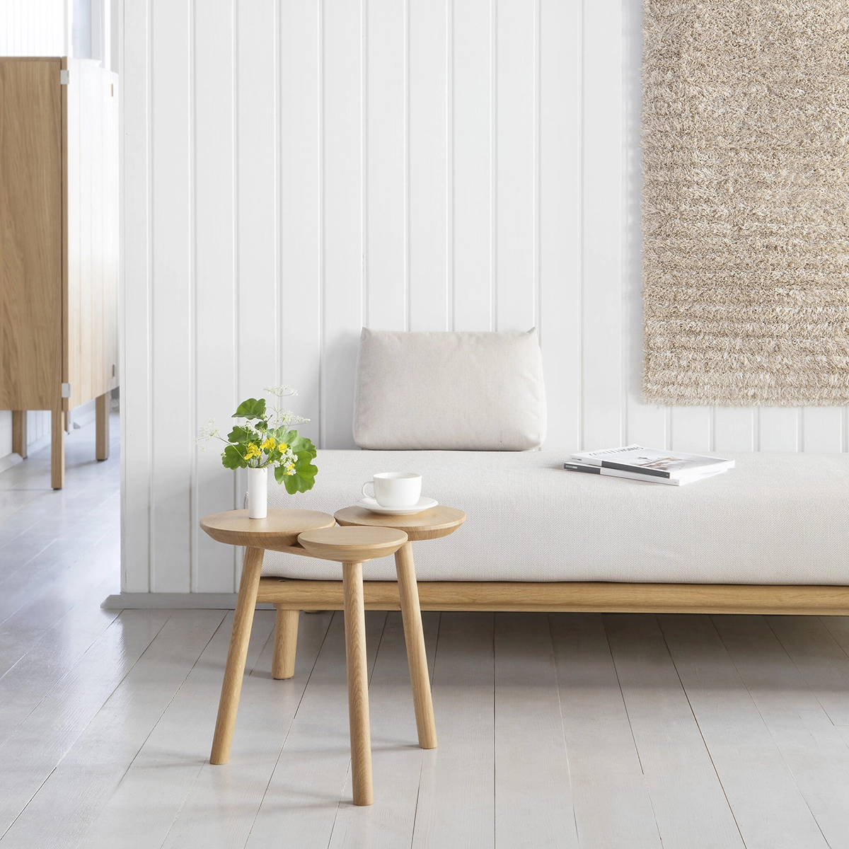 Nao Tamura designed the July table thinking about the log piles in the forest. The round, organic shapes of the product make it easy to combine many together, or use just one. July is very versatile how it can be used.