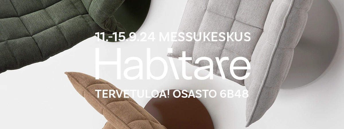 In addition to our own fair stand, you can explore our products at the inspiring Habitare Materials exhibition, the Naapurit- Neighbors theme area, and the atmospheric space of Asun.