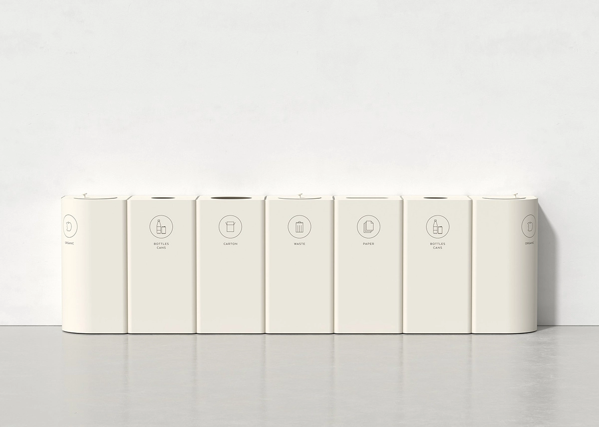KLOSS has the ability to blend in or characterize a space depending on the choice of color and accessories. The systems modularity makes it possible to build almost any formation and to change the constellation over time to continuously follow actual needs. KLOSS can be unlimited repeated, flow along walls, follow inner- and outer corners and even embrace pillars. The modules can also be grouped in small or large freestanding recycling islands. If a recycling solution needs to be mobile, the KLOSS units can easily be mounted on wheels.