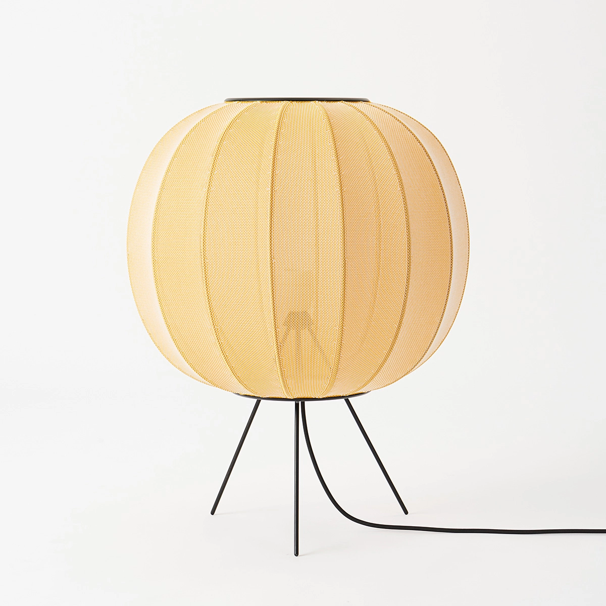 The choice of material for the knitted lamp is quite innovative. Can you tell about the story and particularities of the fabric?