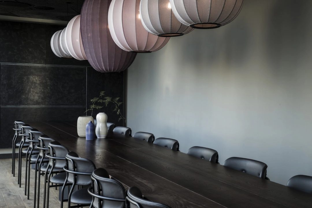 The lamp is really simple in the sense that it doesn’t scream for attention and it’s easy to integrate in any interior space. It comes in a range of sizes and colors, which means you can custoize it to fit either a private home or a public space. It can be used alone or in clusters, either low over a table or hanging high and freely in the room.