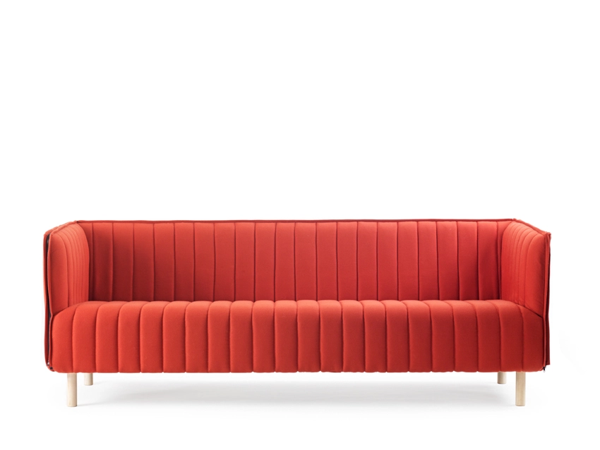 ”The Kvilt seating group is inspired by thick winter jackets with big zippers. It is a flirt with fashion in which I have focused on different quilting techniques. I think the inside is as important as the outside. The frame is built up of Pirelli bands that follow the body’s movement and reduce the weight of the furniture. We have invested many hours in achieving maximum comfort. I want people to be able to sit in an attractive way and not be swallowed up by soft cushions. The padding is firm and is softened by the quilted fabric.”
