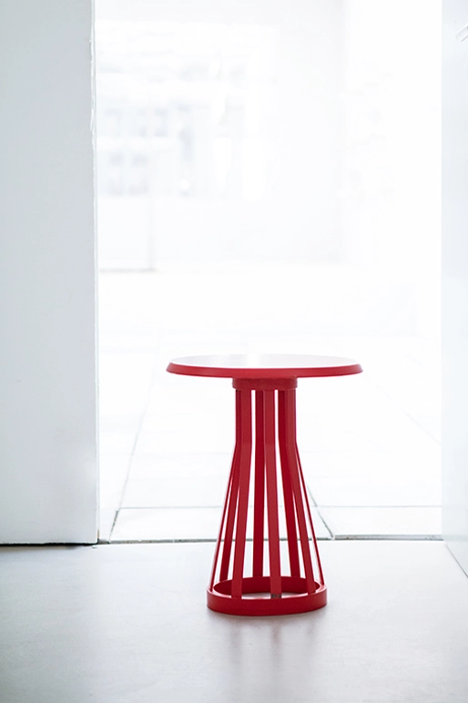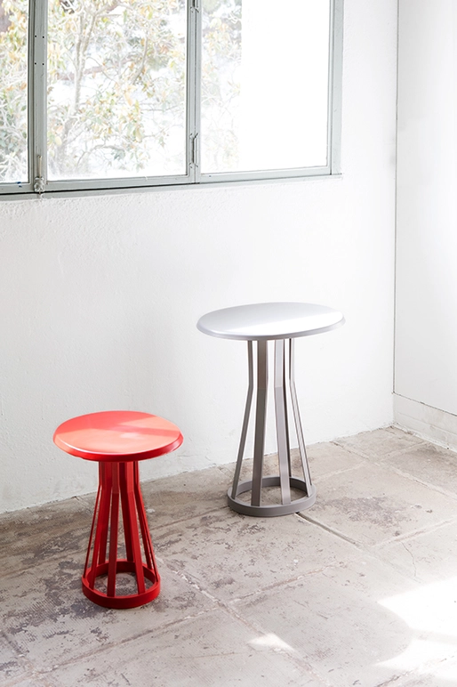Tables that look neither too technical nor cold and minimalist. The lightweight, graphic leg structure supports an off-round top. The series ranges from a tiny side table to a huge dinner table.
