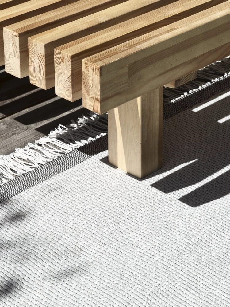 Laveri is a versatile furniture for indoor and outdoor use. Wooden bench is beautiful as a big seat or a low table. It is easy to change it to comfortable daybed or sofa with big cushions and a mattress.