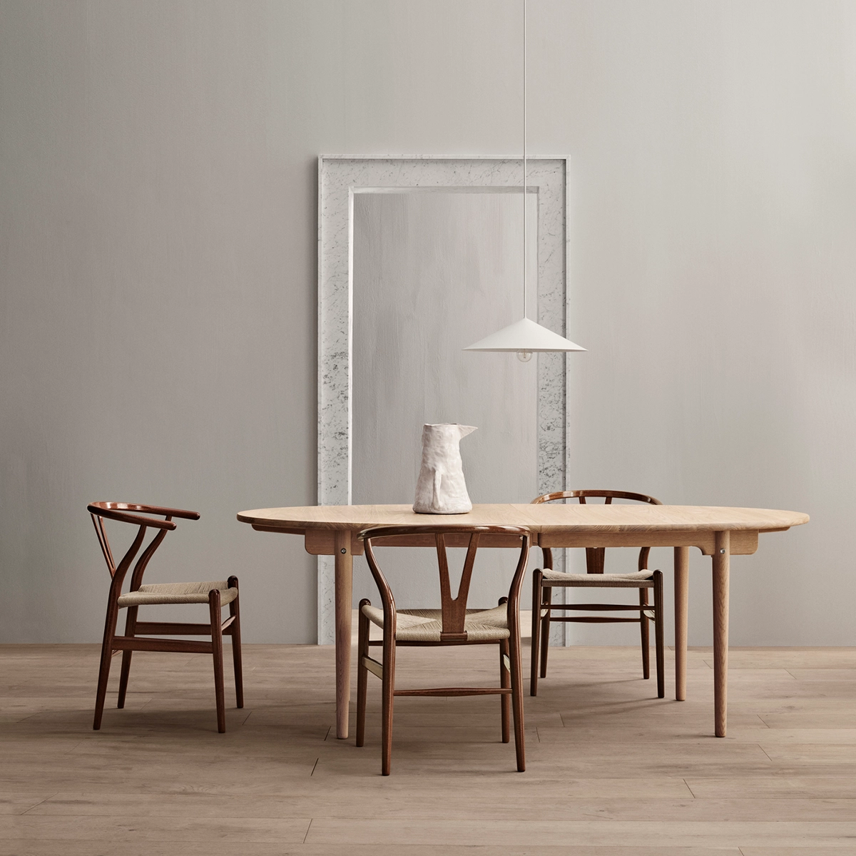 The famous Wishbone Chair, which is known for its sculptural wooden frame and woven seat, was one of the first models that Hans J. Wegner designed exclusively for Carl Hansen & Son in 1949. The chair, which has been produced at Carl Hansen & Son’s factory on Funen, Denmark since 1950, comprises 14 parts, while its seat is woven by hand from 120 metres of paper cord. More than 70 years after it entered production, the Wishbone Chair is still celebrated as an international design icon on account of its clean lines, down-to-earth materials and the uncompromising craftsmanship which has helped to define Danish design.