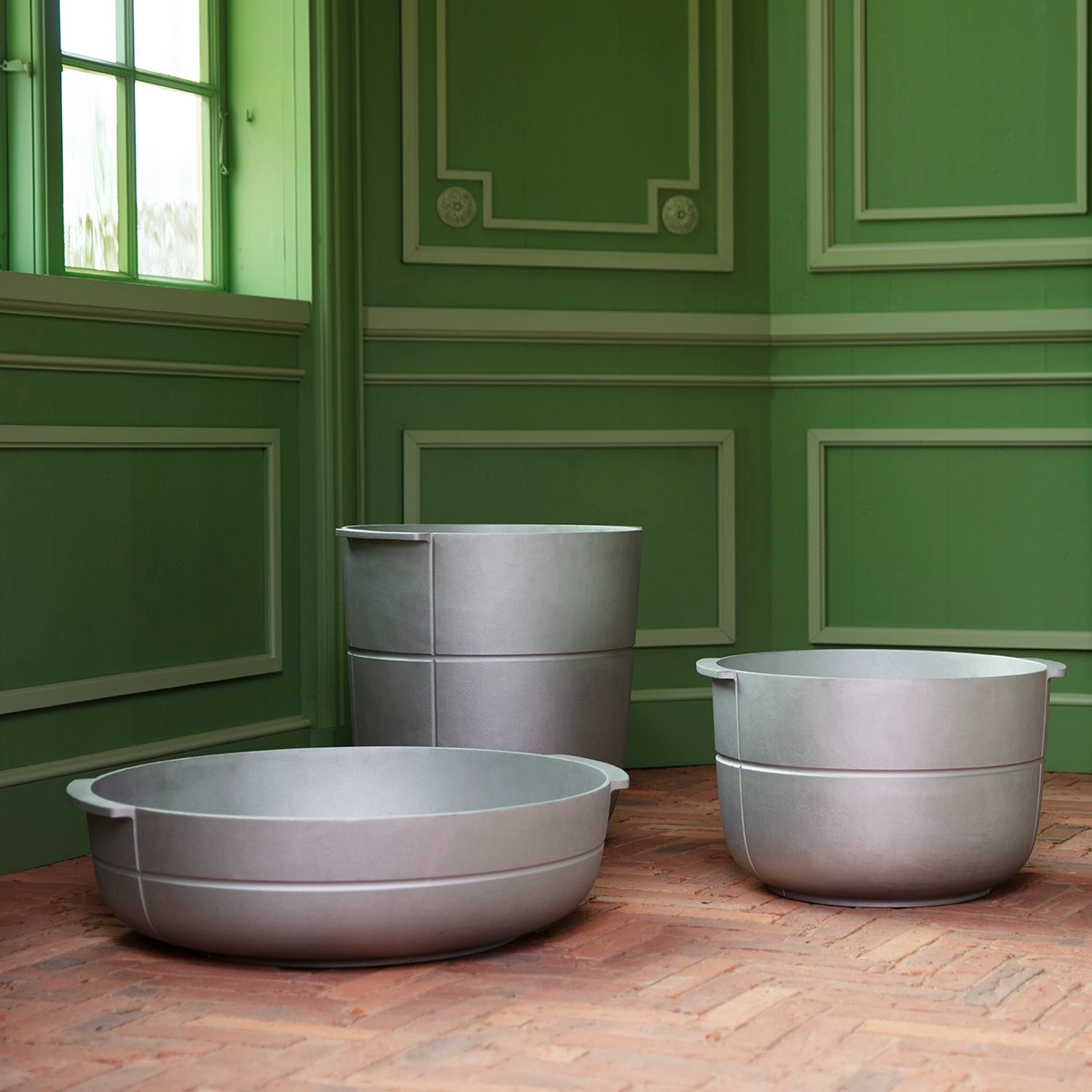 A prerequisite for the work was to create a series of planters that can be used both outdoors and indoors, capable of standing outside all year round and growing more beautiful with each passing season.